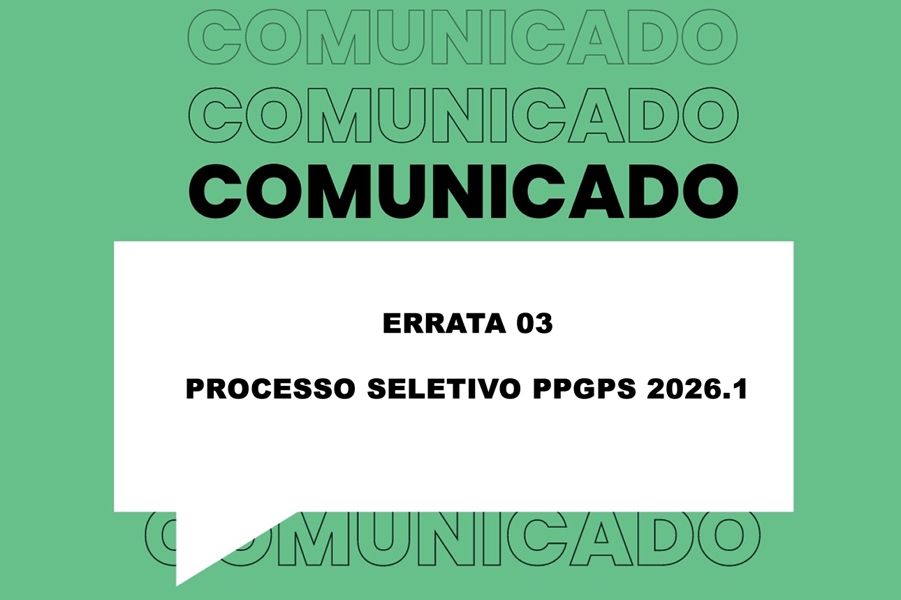 Disponibilizamos aqui a errata 3 do edital do processo seletivo do PPGPS 2026.1 Informações completas sobre o processo seletivo aqui.